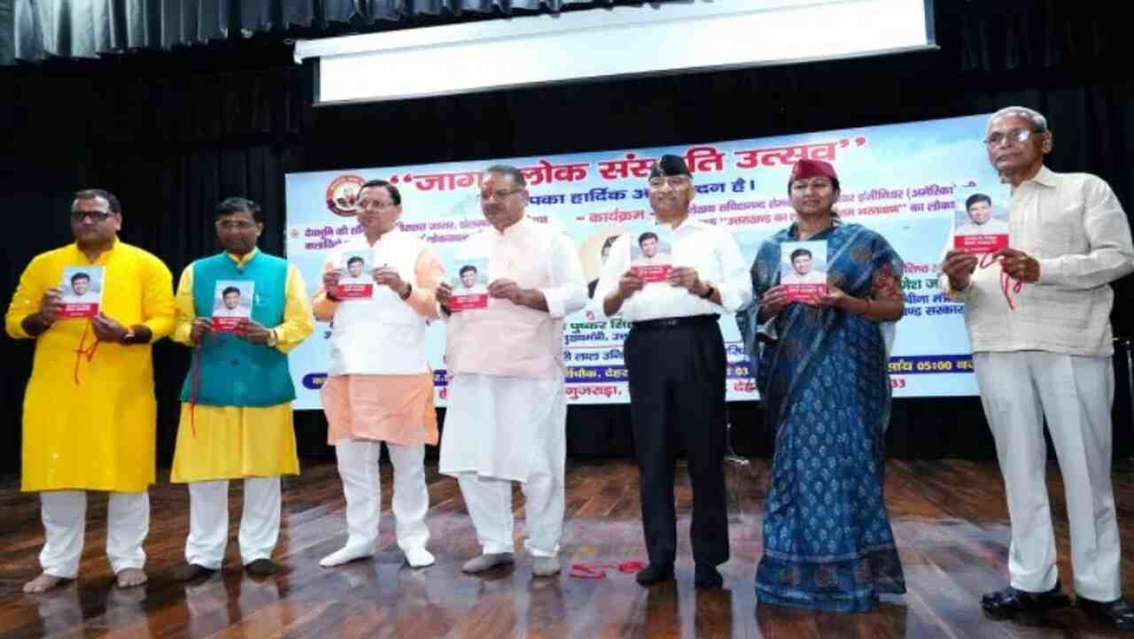 Dehradun: A grand event of Jagar Lok Sanskriti Utsav was organized in Doon. In this, the artists of Jagar, Dhol Sagar gave a beautiful presentation of folk singing and folk playing. Chief Minister Pushkar Singh Dhami said that Jagar and Dhol playing are our cultural identity. He also released the book Uttarakhand ka Lok Putra Pritam Bharatwan written by software engineer and writer Sachidanand Semwal in America. The Chief Minister described folk singer Pritam Bharatwan as the brand ambassador of the folk culture of Uttarakhand.